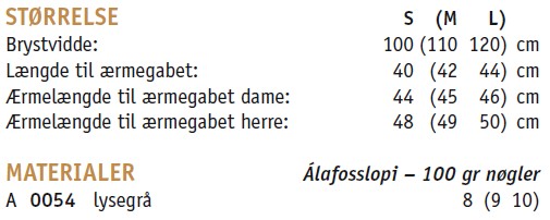 En virkelig skøn unisex sweater i halvpatent “Klukk”. Strikkes i “Alafoss-lopi” 100% Islandsk Uldgarn)