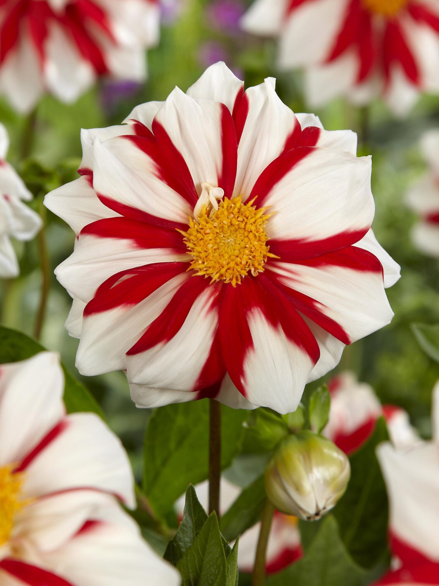 Med dahlia Fire And Ice får du smukke rød og hvid stribede blomster. En lidt anderledes dahlia med halvfyldte blomsterhoveder, hvor hver blomst har sin egen kombination af rød og hvid. Bundfarven på Fire and Ice er hvid, hvorfra er springer varierende “flammer” i rød. Deraf navnet Dahlia Fire and Ice.