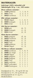 Materialer – (Vælg selv dine farvekombinationer her: Lettlopi)