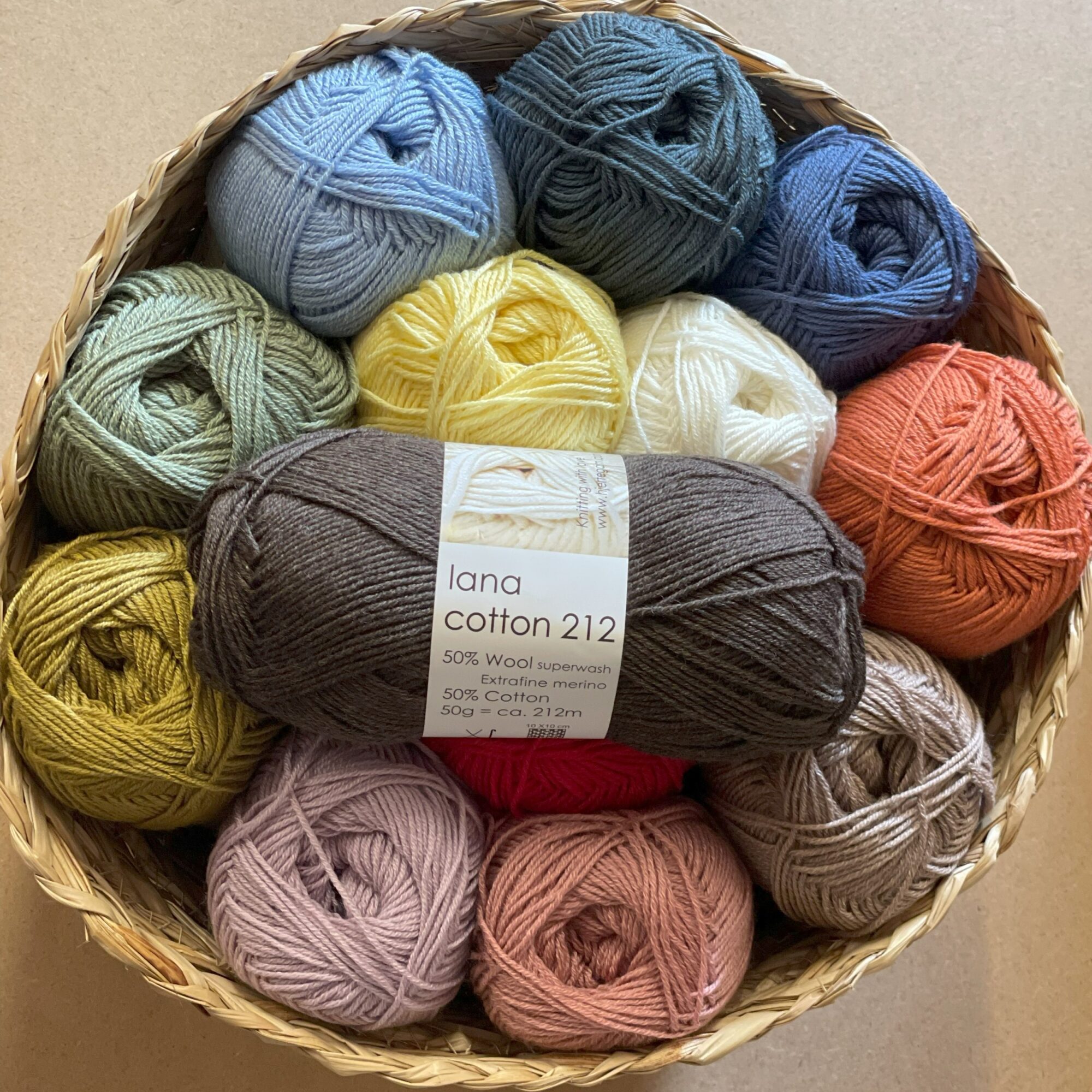 Lana Cotton 212 er et skønt blandingsgarn af slidstærk bomuld og blød, fin merino uld. Garnet er dejlig blødt og egner sig derfor især til baby-, børne- og voksentøj. Fåes i mange flotte farver.