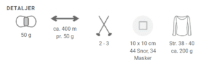 Strikkefasthed: 34 m x 44 p = 10 x 10 cm