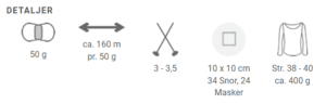 Strikkefasthed: 24 m x 34 p = 10 x 10 cm