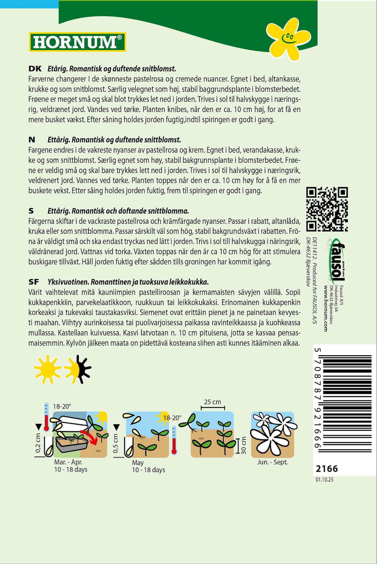 Frøene er meget små og skal blot trykkes let ned i jorden. Trives i sol til halvskygge i næringsrig, veldrænet jord. Vandes ved tørke. Du kan se andre farver af denne fine sommerblomst her: Løvemund Night and Day, Rosa Løvemund Winner, Hvid Løvemund Elegant eller Løvemund blanding