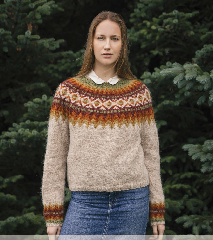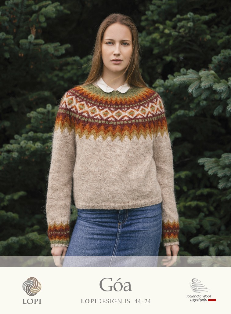 StrikkeKit “Góa” – Skøn islandsk Sweater med virkeligt smukt mønster. Strikket i det nye lækre uldgarn “Fjallalopi 100% islandsk uld”. Designet med udgangspunkt i “Góa” der er “den femte vintermåned i den gamle islandske kalender. På denne tid står solen står højere på himlen, og det længe ventede forår er på vej.” Det smukke klassiske mønster er designet med henblik på at indfange denne stemning. En virkelig smuk og lækker sweater.
